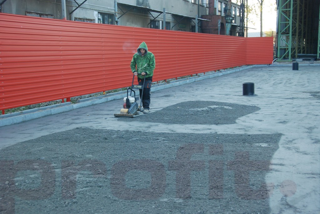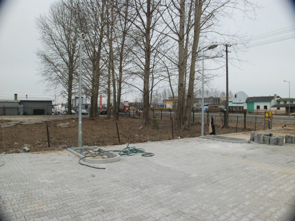 Ostatnie prace brukarskie na parkingu, przy odkurzaczach