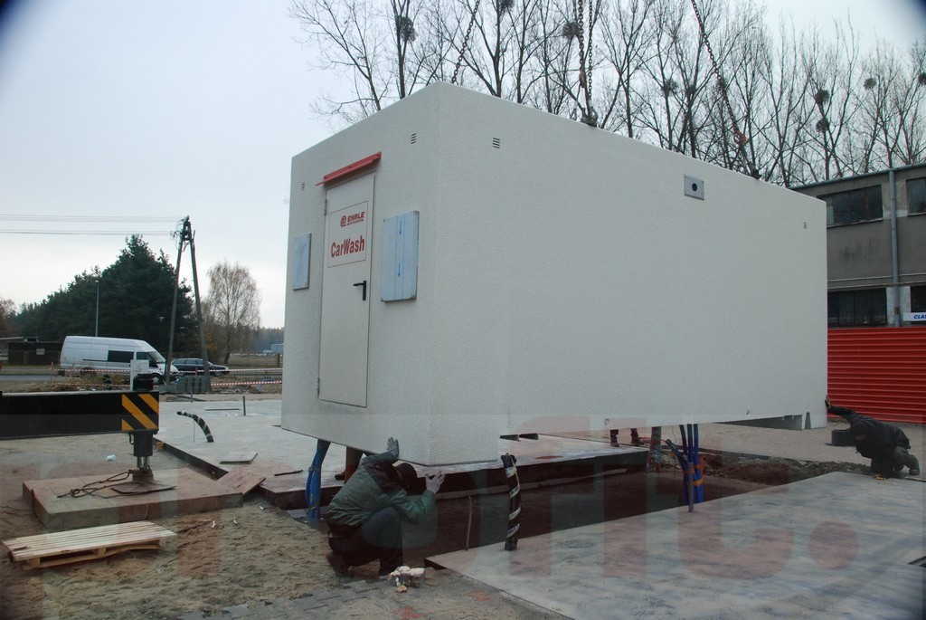 Trafienie między płyty myjni i osadzenie 34 tonowego kontenera w odpowienie otwory nie było łatwe